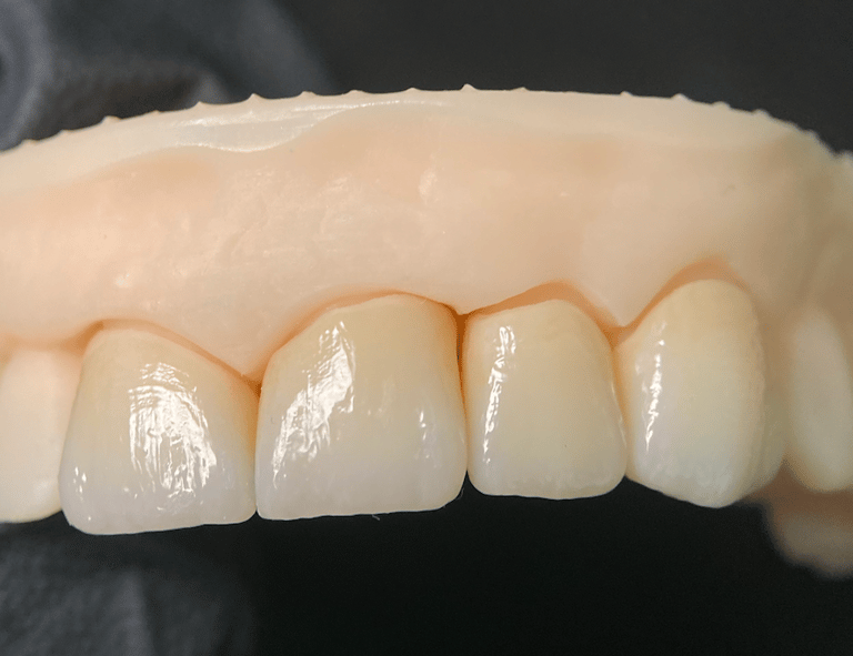 A diferencia del zirconio tradicional (blanco opaco o teñido manualmente), el zirconio multicapa reproduce de forma natural el degradado cromático del esmalte y la dentina, sin necesidad de estratificación cerámica.